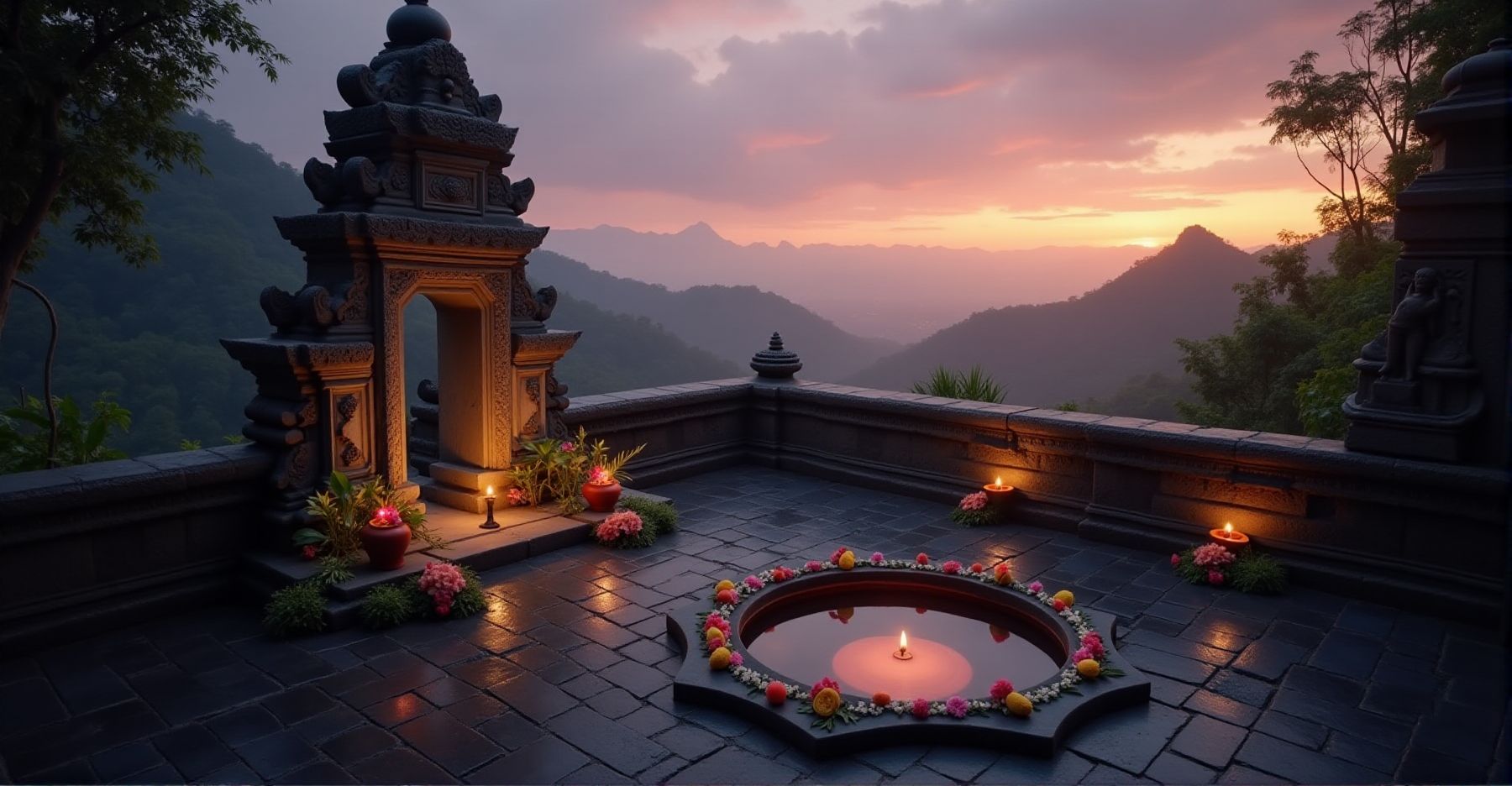 Meditatie en spirituele oefeningen doe je vaak bij zonsopgang of zonsondergang. Meestal bij een tempel of in de natuur, waar het rustig en bijzonder aanvoelt.