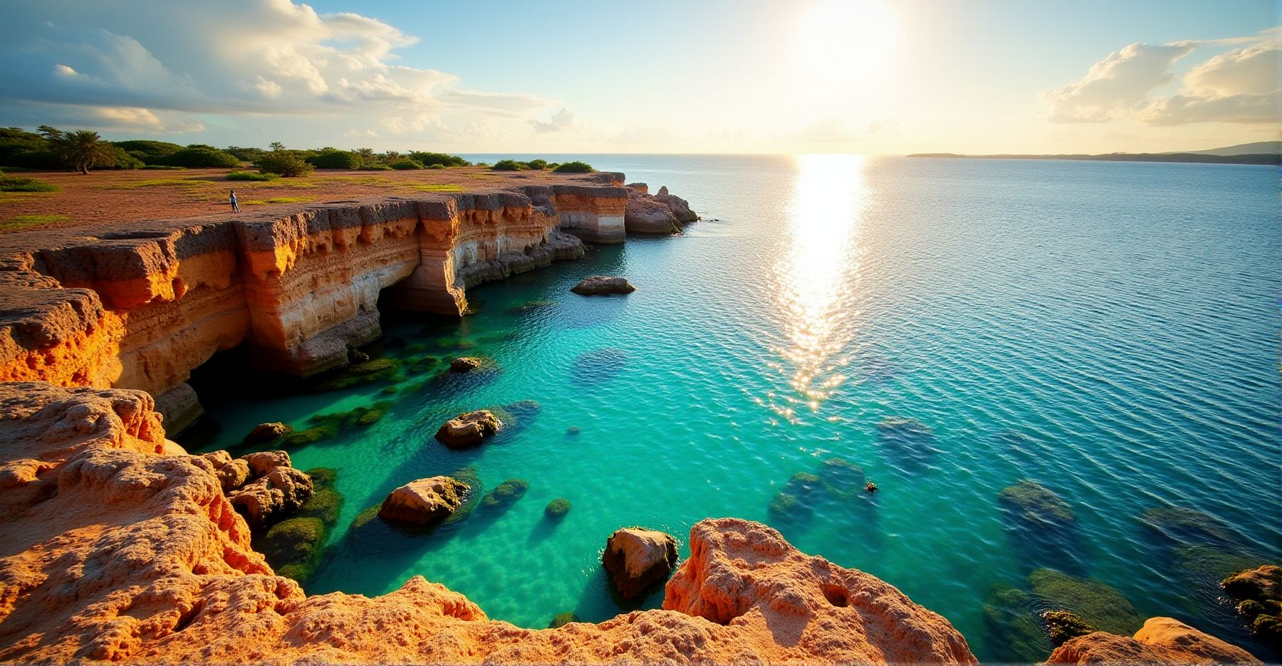 De Blue Lagoon is een diepe, helderblauwe baai tussen kalkstenen kliffen. Het mooiste uitzicht heb je vanaf het noordelijke klifpad, vooral tussen 11 en 1 uur ’s middags als het water op z’n blauwst is. Zwemmen wordt afgeraden door de sterke stroming en scherpe rotsen, maar je camera mag je hier zeker niet vergeten.