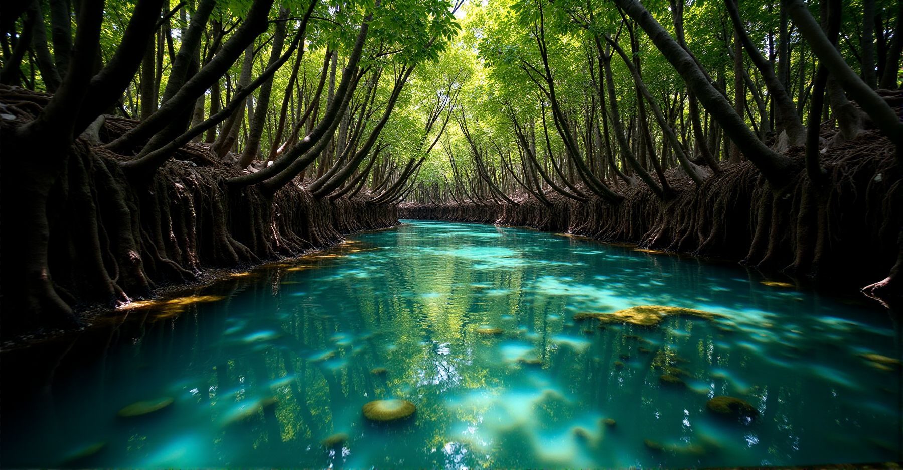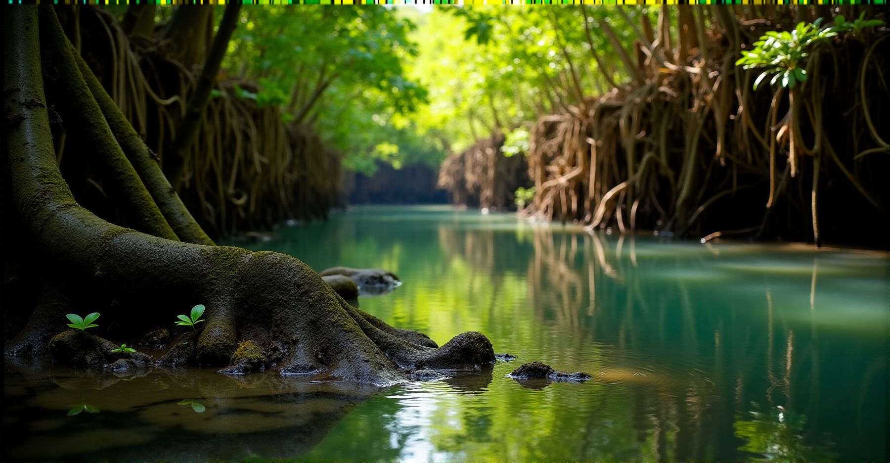 Nog iets bijzonders: Acropora koraalsoorten groeien tot tien meter van de mangrovewortels. Mangrove en koraal werken hier samen. Op de wortels groeien sponsen en zeeanemonen, en jonge rifvissen gebruiken beide plekken als schuilplaats.