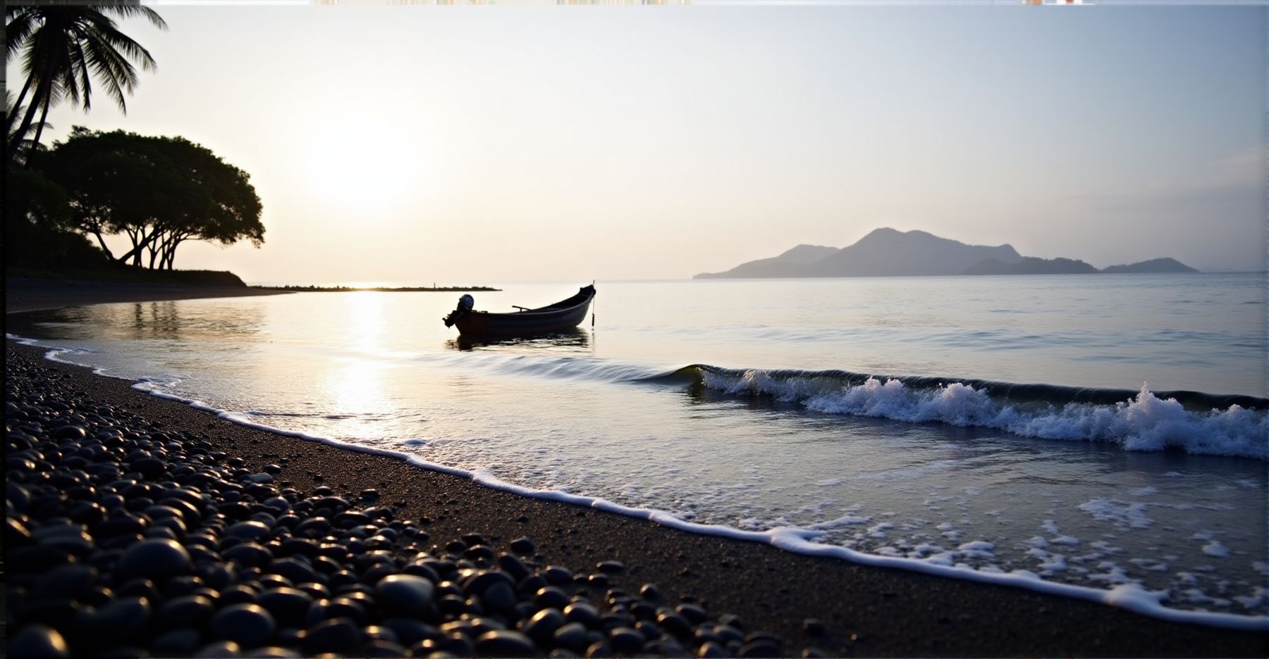 Als je op het strand van Lovina staat, valt het meteen op: het zand is zwart. Dat komt door de vulkanen in de buurt, zoals Batur en Agung. Die hebben in de loop van de tijd donker zand en fijn basalt naar de kust gebracht. Het voelt zacht aan onder je voeten en wordt snel warm in de zon, dus slippers zijn geen overbodige luxe.