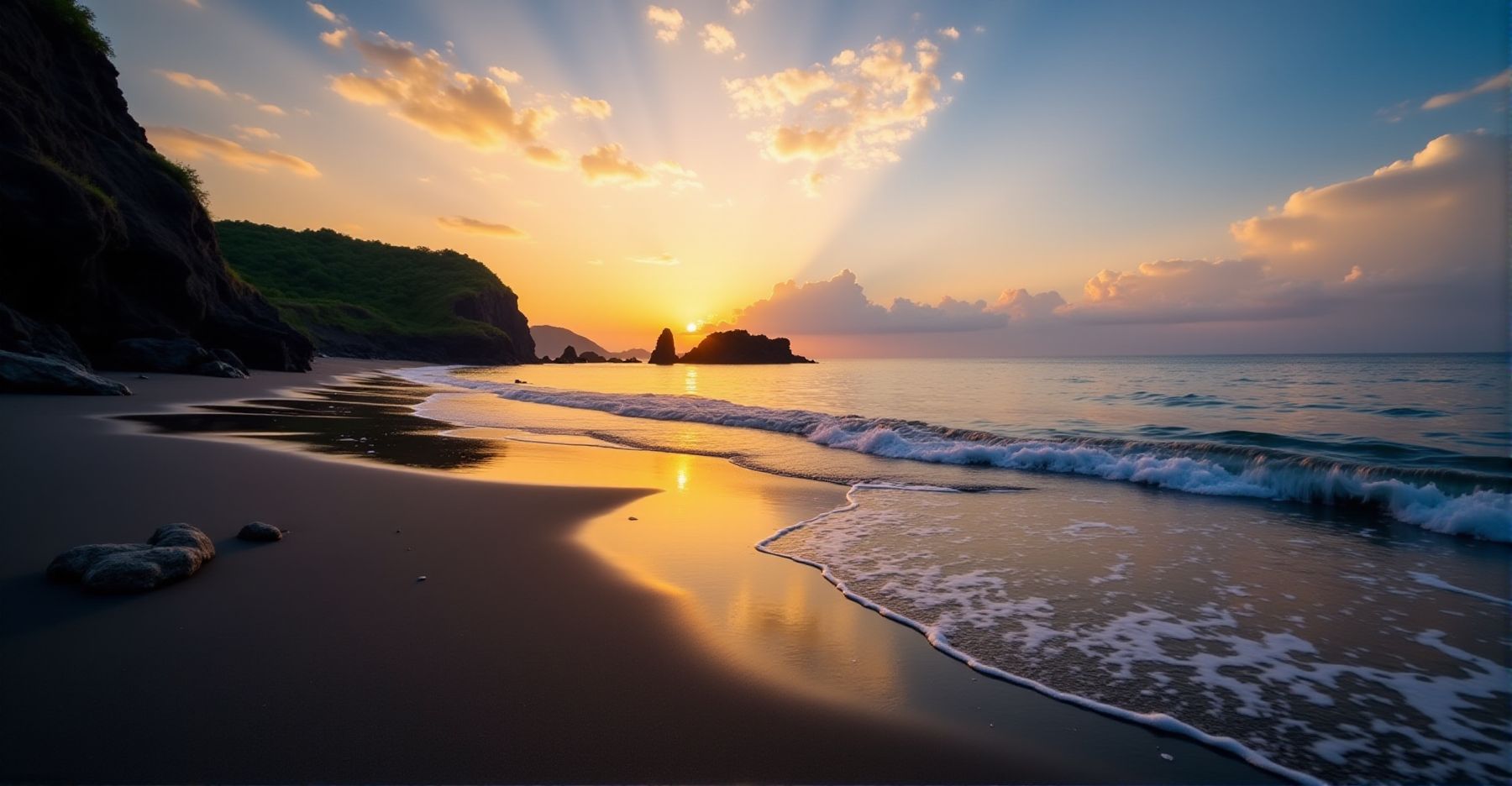 Stel je voor: je loopt over Senggigi Beach en ziet het zand onder je voeten veranderen van zwart naar goud. Dat komt door het vulkanische zand dat zich mengt met lichtere korrels. Het geeft het strand een bijzonder patroon, echt iets wat je niet snel ergens anders ziet.
