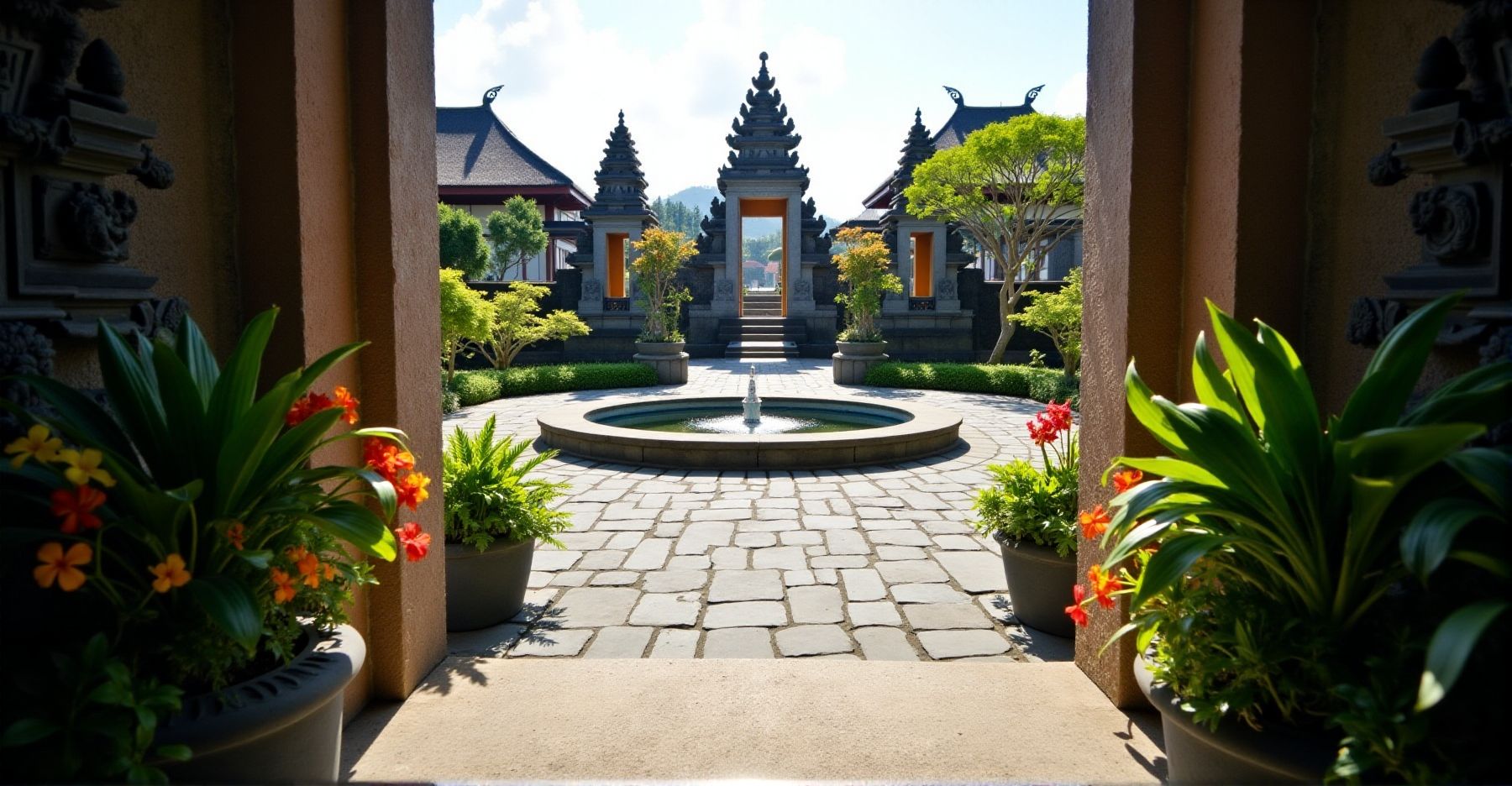 Stel je voor: je loopt een Balinese tempel binnen en meteen valt het je op hoe alles is ingedeeld. Squares, ofwel de pleinen, vormen echt het hart van het tempelleven. Alles draait hier om het Tri Mandala principe. Dat betekent dat de ruimte in drie delen is verdeeld, elk met een eigen betekenis en functie. Je komt binnen via de candi bentar, die gespleten poorten. Die markeren het moment waarop je het gewone achter je laat en het heilige binnengaat.