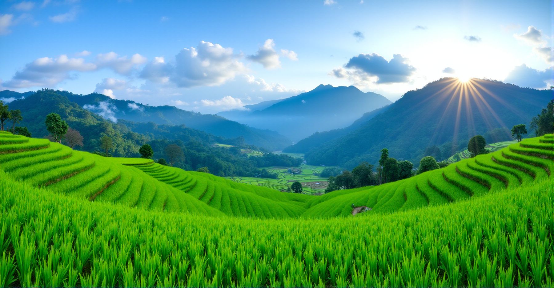 De rijstvelden rond Tetebatu zijn echt een plaatje. Ze liggen als groene lappen over de hellingen van de Rinjani-vulkaan. Afhankelijk van het seizoen zie je ze veranderen: van frisgroen naar goudgeel of bruin. De lokale boeren zorgen samen voor het irrigatiesysteem, met kleine kanalen en bamboebuizen. De terrassen volgen de glooiingen van het landschap en zijn verstevigd met stenen muurtjes en aarden wallen. Zo blijft het water op de juiste plek en voorkom je erosie.