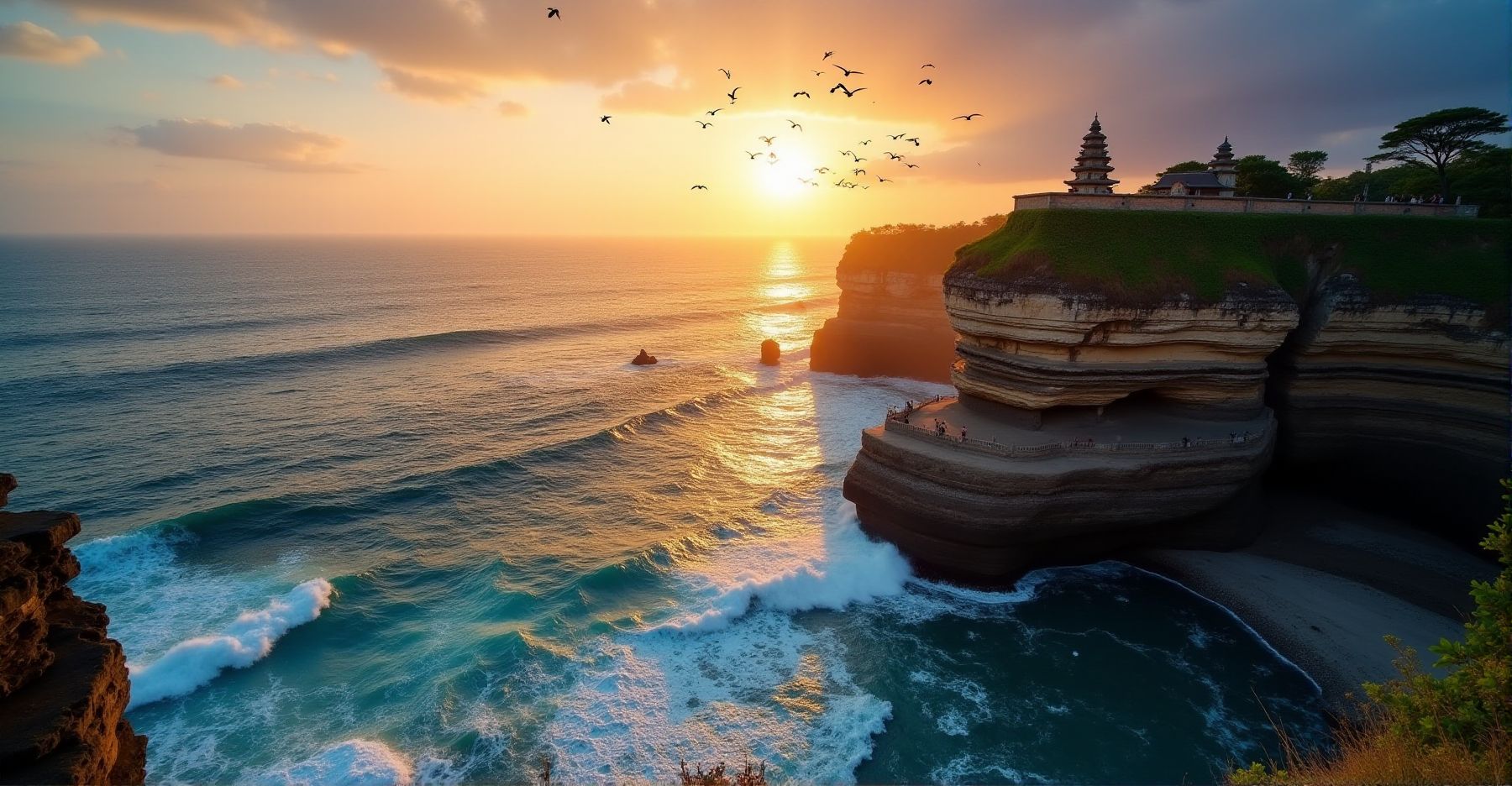 De kliffen van Uluwatu zijn indrukwekkend: ze steken zo’n zeventig meter boven de Indische Oceaan uit. Door de jaren heen zijn hier bijzondere rotsen ontstaan, waar zeldzame planten en dieren leven. Langs het pad bij de tempel vind je verschillende plekken met een prachtig uitzicht over de oceaan en de ruige kust.
